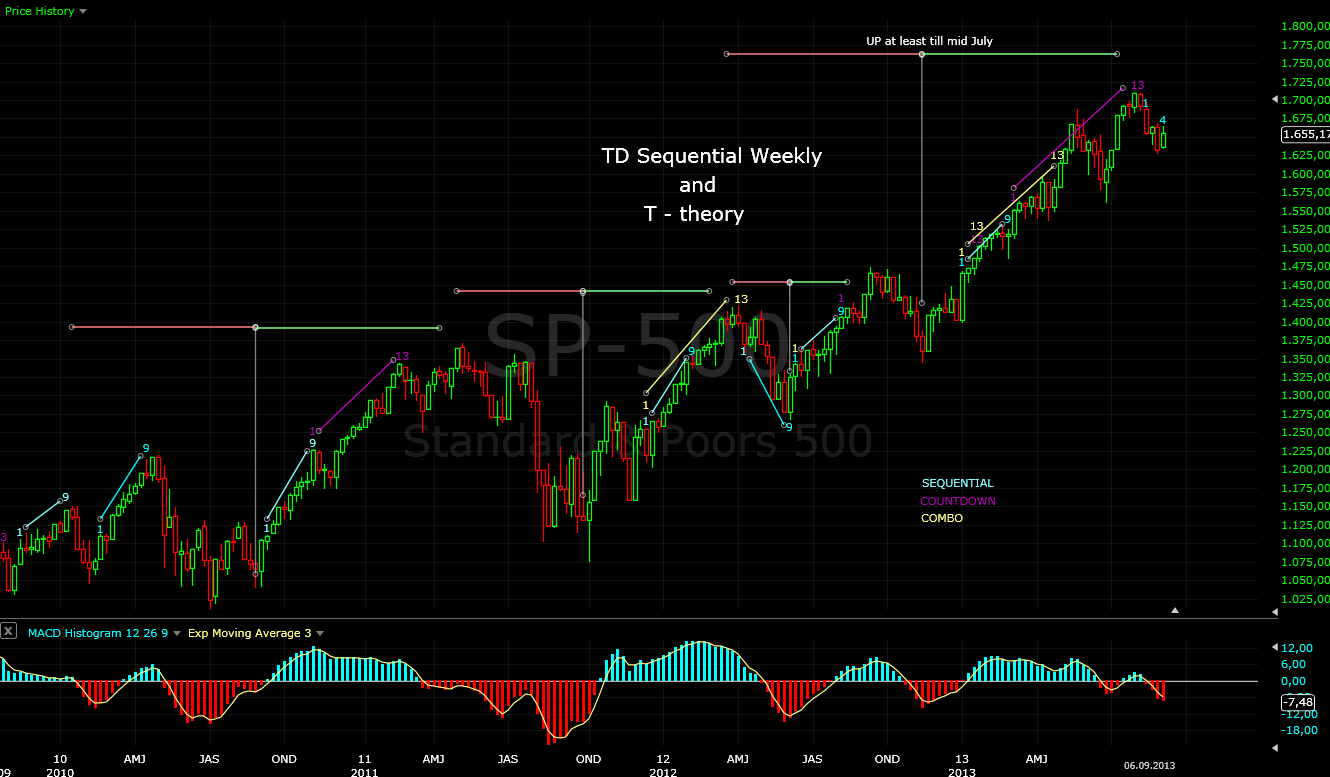 Comment: Looking at the futures my forecast for a short term bottom and positive opening is right... but not very helpful - gaps. I think the news that there will no strike on Syria caused a huge gap up on the DAX and probably SP500 will gap higher tomorrow too.