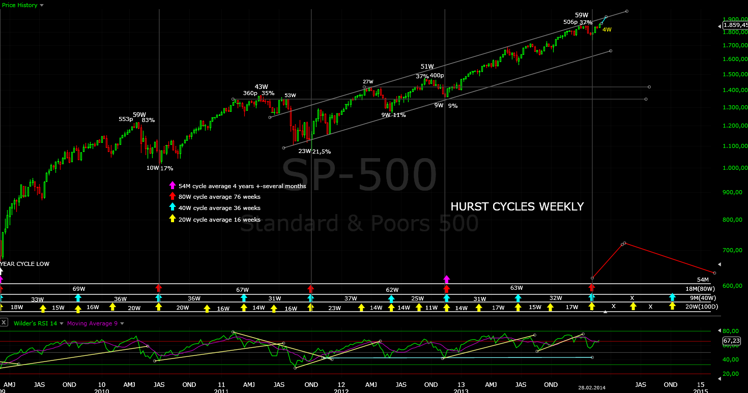 Intermediate term - I think that we have confirmation that the next 20 week cycle is running(4 weeks already to the upside), the indicators look to me like anything to the downside will be just a pullback(as long as the price stays above 1810).